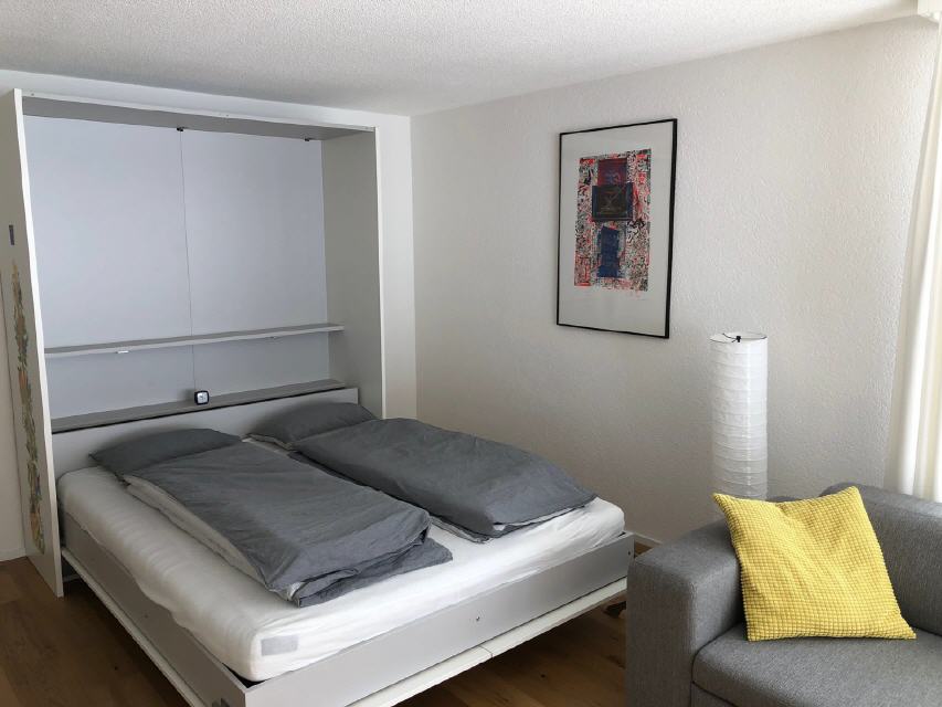 - Geräumiges Wohn- und Esszimmer mit Schrankbett (für 2 Personen)