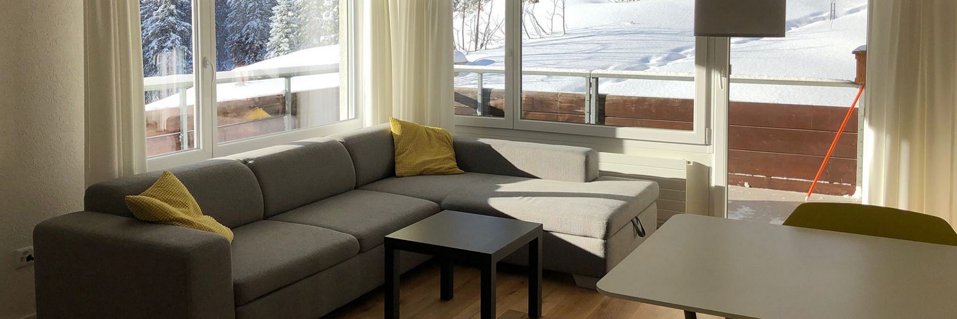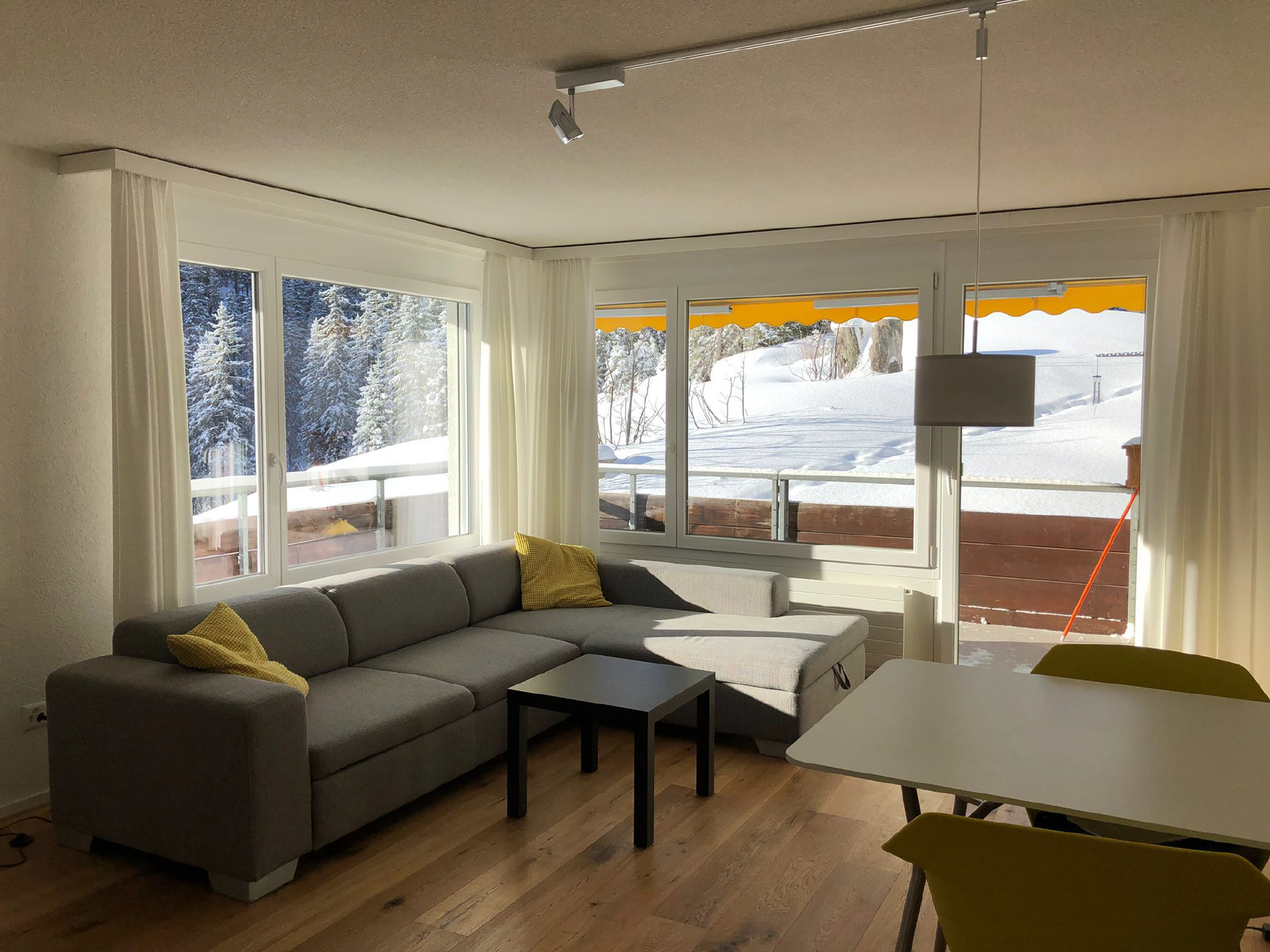 Die grosszügige und helle 2-Zimmer-Wohnung befindet sich im Erdgeschoss vom Rothornblick, Hubelstrasse 58, 7050 Arosa an ruhiger Lage und von viel Natur und einem See umgeben. Die Wohnung eignet sich optimal für eine Familie mit 2 Kindern.